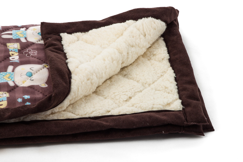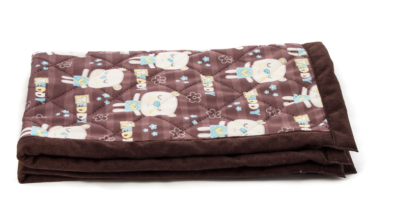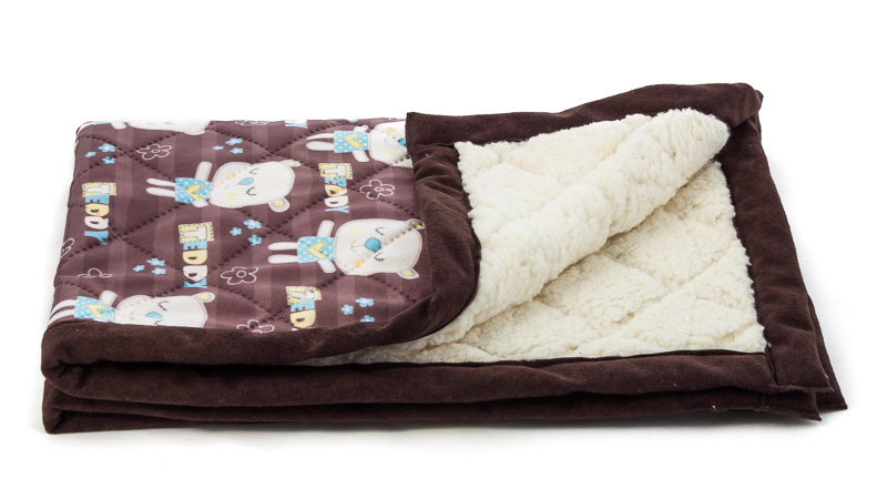 Kocyki pikowane są ultradźwiękowo. Kocyk Teddy ma brzeg wykończony brązową lamówką.